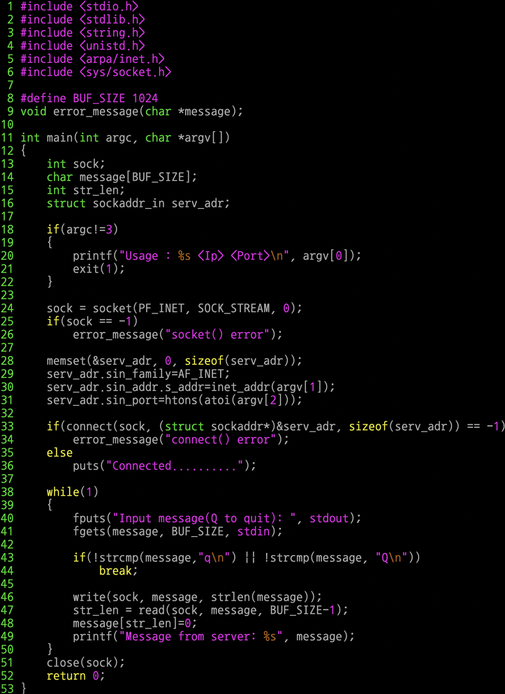 앞에서 봤던 echo_client.c의 코드를 다시 한번 봐보자.