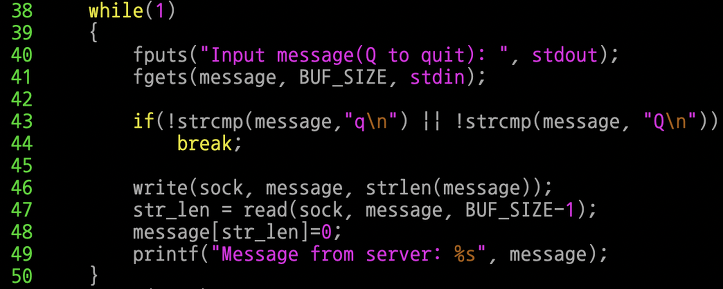 그리고 이어서 echo 클라이언트의 입출력 문장이다.
