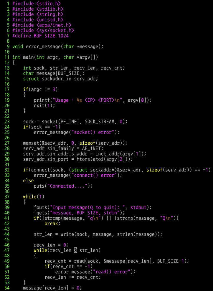 recv_len에 저장된 값과 str_len에 저장된 값이 일치하는 시점이 while문을 빠져나가는 시점이다.