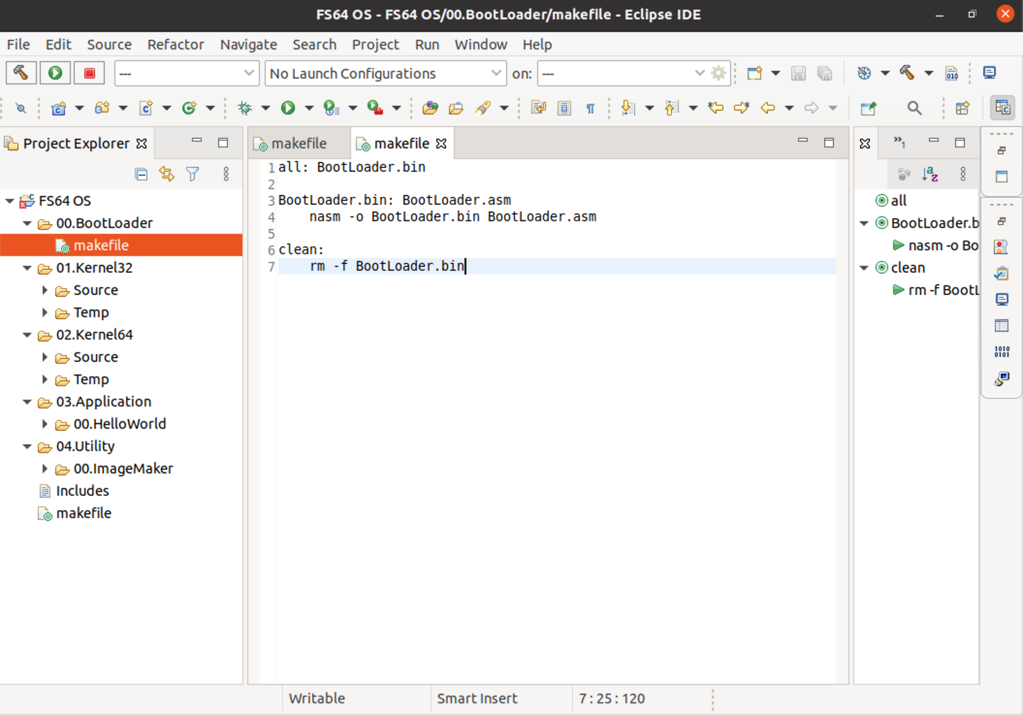 이제 자신이 만들 OS를 위한 Makefile을 만들겠습니다.
