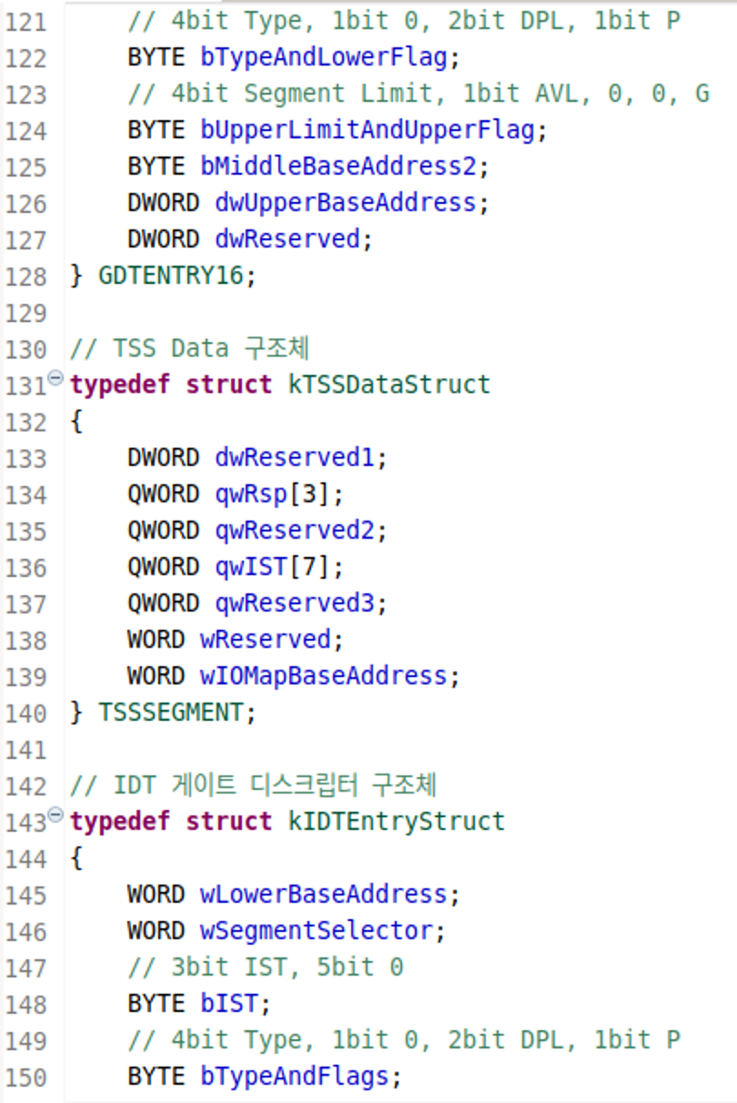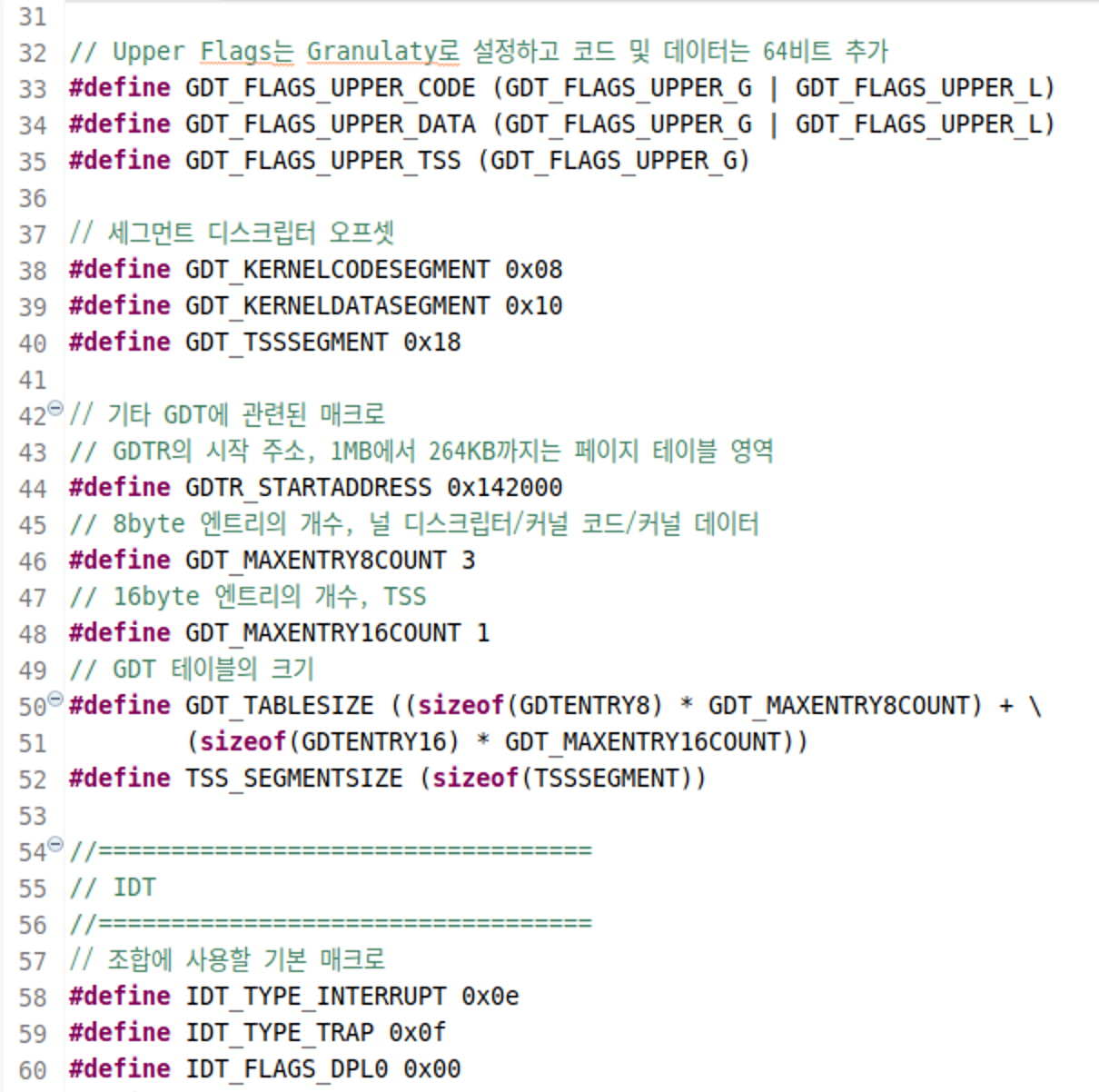 GDT의 시작 주소 같이 상수로 사용된 부분은 유지보수를 위해 매크로로 치환했습니다.