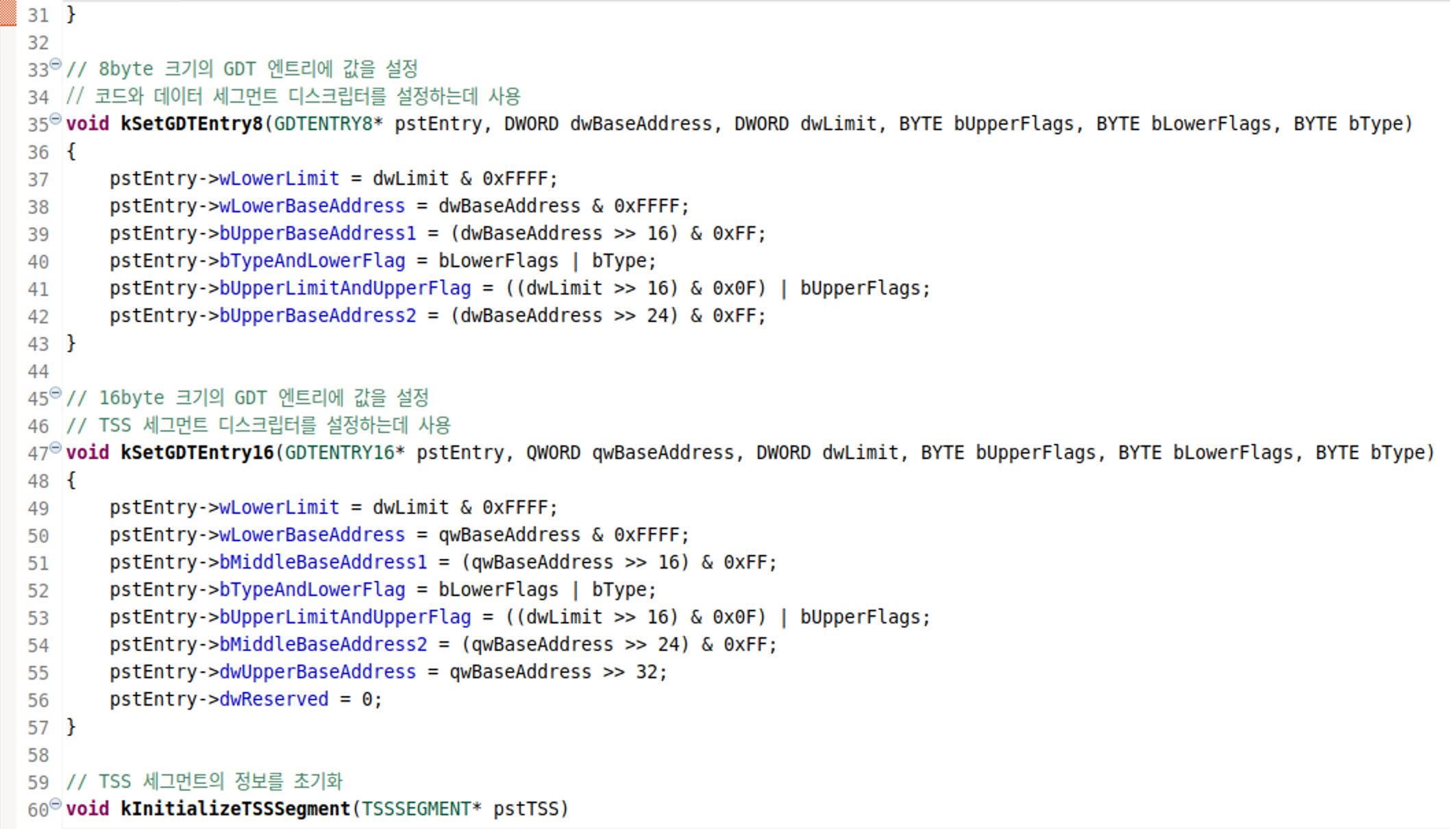 디스크립터 파일은 현재 가장 핵심적인 역할을 하는 파일로, GDT와 IDT에 관련된 모든 함수와 매크로가 정의되어 있습니다.