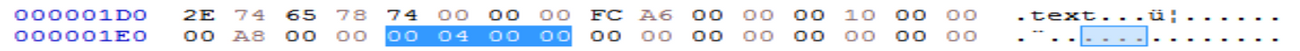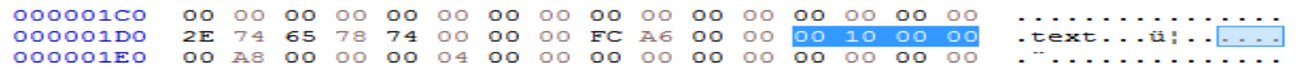 .text 섹션의 VirtualAddress는 1000이고, 사이즈는 A6FC이다.