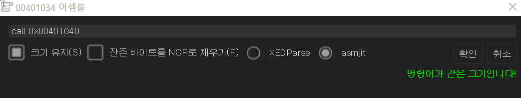 그리고 3번째 메세지를 띄우는 부분의 OPCODE의 크기는 19Byte이다.