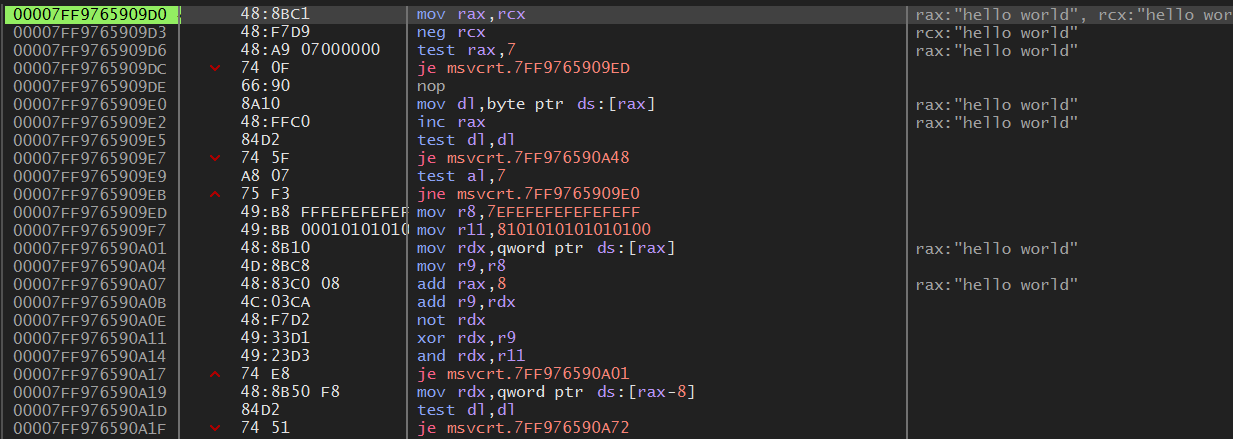 4015DC 주소의 strlen() 함수 call 명령 내부로 가면 위와 같이 나온다.