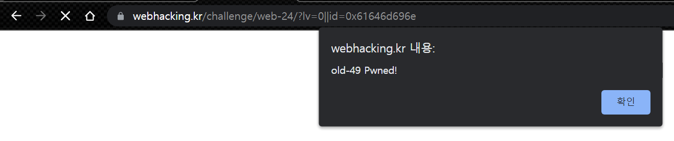 URL에 위와 같이 입력하면 lv=0인 것은 없으므로 아무것도 출력될 데이터가 없지만 뒤에 or을 의미하는 연산자가 붙어 id가 admin인 데이터를 출력하게 된다.