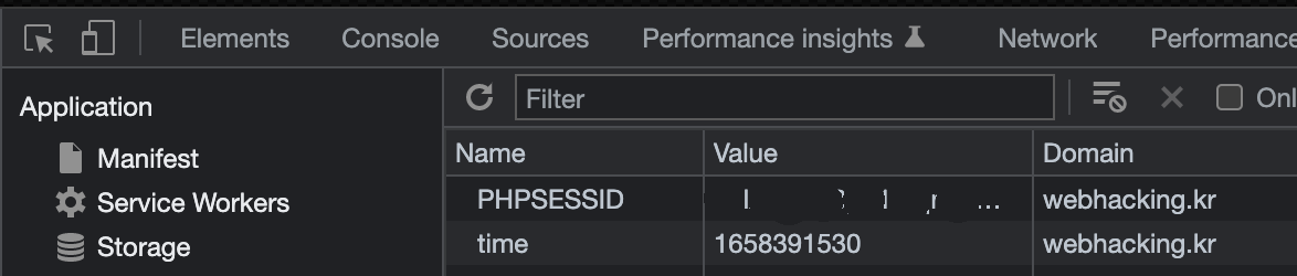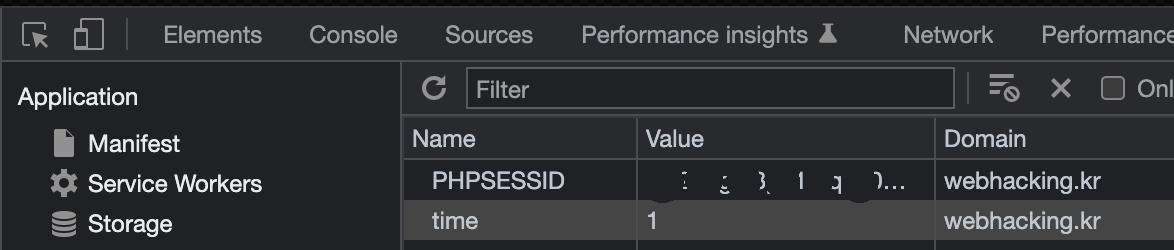 cookie를 봐보면 위와 같이 time 쿠키가 있다.