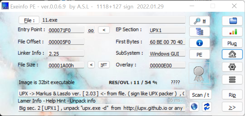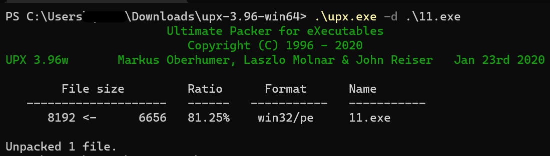 OEP의 주소를 확인하기 위해 UPX 언패킹을 해준 후 디버깅한다.