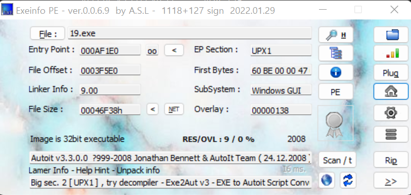 이번 프로그램은 Autoit으로 만들어졌고, UPX로 패킹되어 있다.