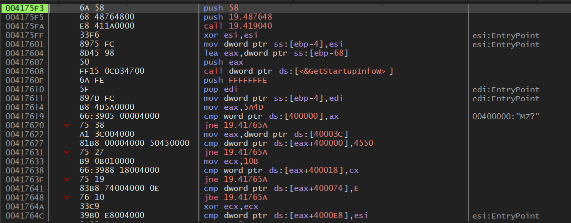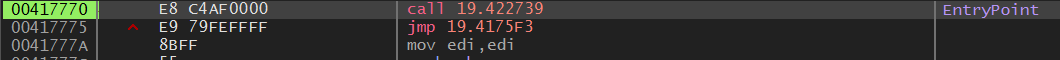 417770(EP code) -> 417775 -> 4175F3 -> 417700(함수 호출) -> 40EAF9(함수 호출) -> 40EAF9(함수 호출) -> 40E961