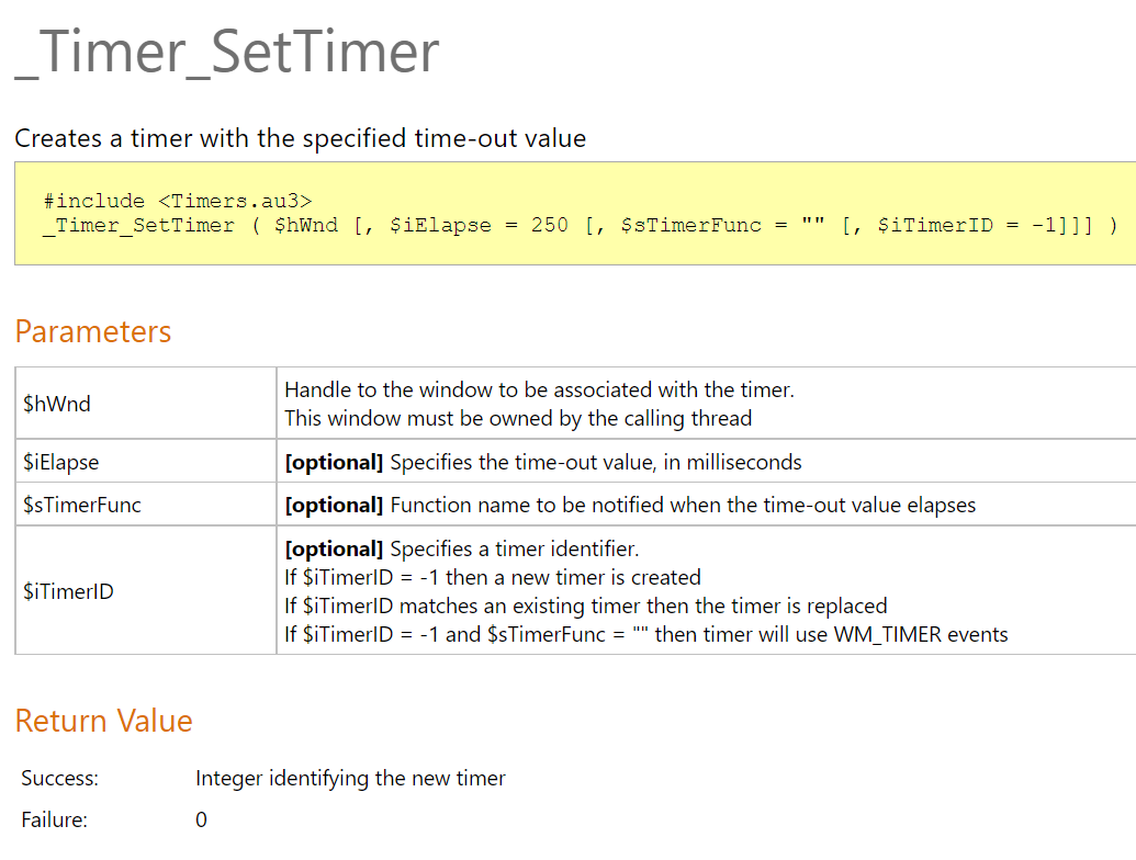 4개의 SetTimer 함수의 인자들을 확인하니 위와 같이 4개의 인자를 받는다.