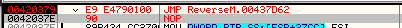 42039A 주소로 간 후 스크롤을 조금 위로 올려보면 420379 주소에 JE 명령이 있다.