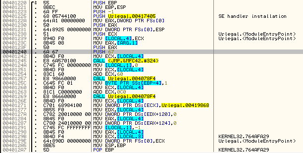 401240 주소에서 67h를 스택에 밀어넣고 있다.