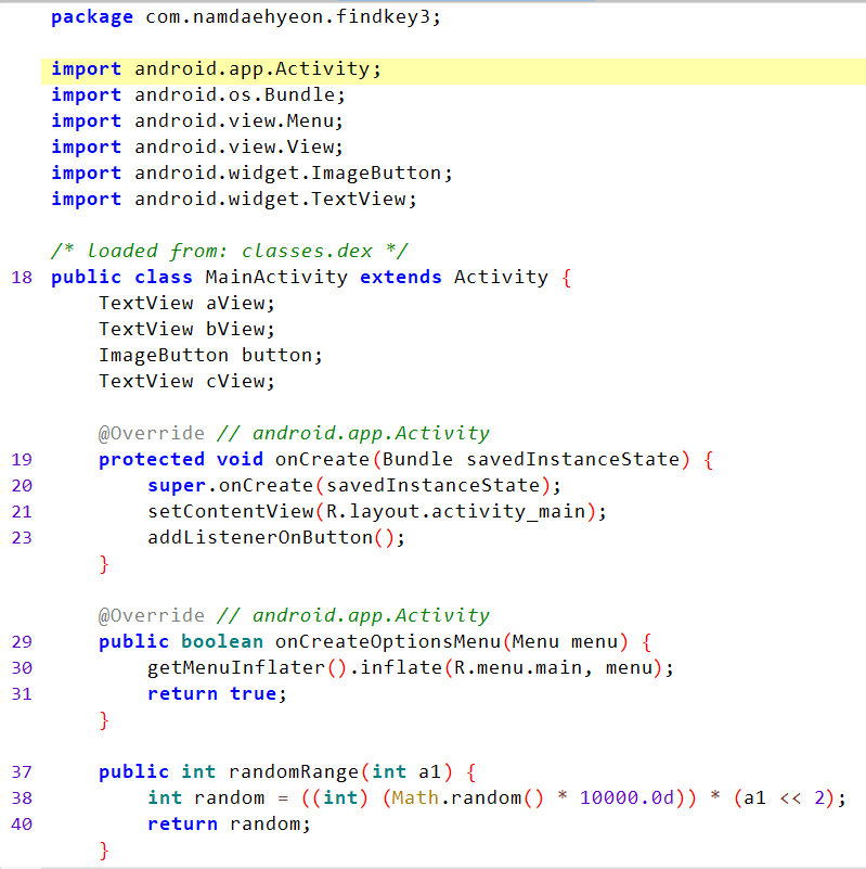 smali -> com -> namdaehyeon -> findkey3 -> MainActivity$1.smali 파일을 연다.