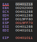 401011 주소의 내부는 위와 같은데 EDI 레지스터에는 401011 주소가 저장되어 있다.