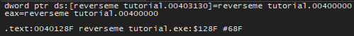 40128A 주소에서 GetModuleHandleA() 함수를 호출한 뒤 반환값이 eax에 담기는데 400000 이라는 값이 들어있다.
