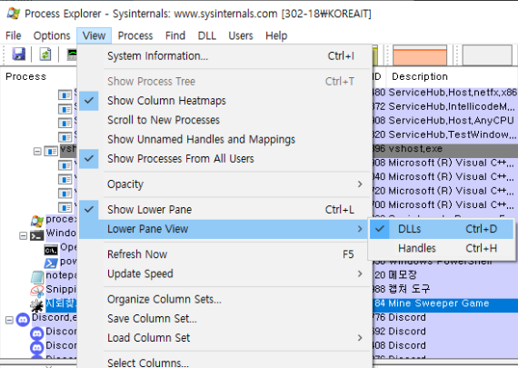 // TH32CS_SNAPMODULE 파라미터를 이용해서 지뢰찾기 프로세스에 로딩된 DLL 이름을 얻음