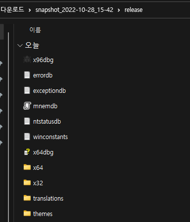 release 폴더에 들어가면 위와 같이 x96dbg 파일이 보인다.