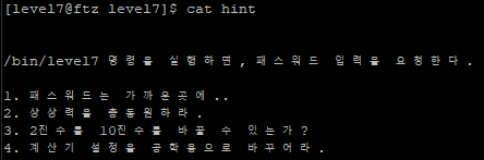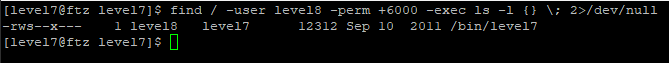 find 명령으로 위와 같이 명령을 내리면 /bin/level7 파일이 나온다.