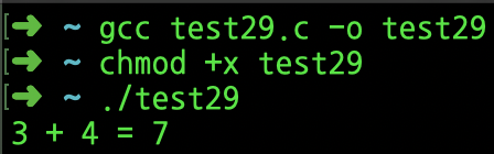 위 코드는 test29.c의 코드보다 양이 적지만 같은 동작을 하는 코드이다.