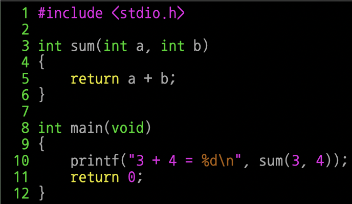 아니면 원형을 쓰지 않고 먼저 정의를 하고 나중에 main() 함수에서 사용해도 된다.