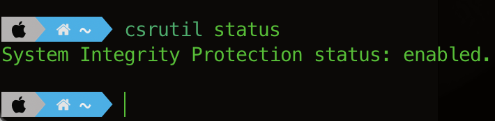 csrutil status 명령을 터미널에 입력해보면, 무결성 보호가 enabled 되어 있다.