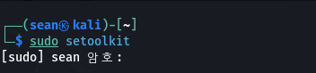 반드시 관리자 권한으로 setoolkit을 실행해줘야 실행된다.