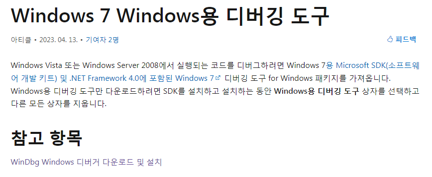 최신 버전 WinDbg는 위의 링크를 통해 다운받아 설치할 수 있다.
