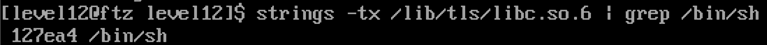 그리고 이어서 strings 명령과 grep 명령을 이용해 /bin/sh 문자열이 있는 주소를 알아온다.