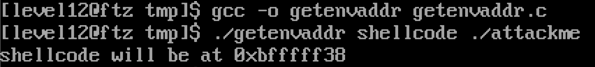 당연하다 위에서 나온 0xbfffe9c0은 tmp 디렉토리 안에 있는 attackme 파일을 실행했을 때의 스택 주소이기 때문에 level12 디렉토리 안에 있는 attackme 파일이 실행될 때의 스택 주소와는 다른 것이다.