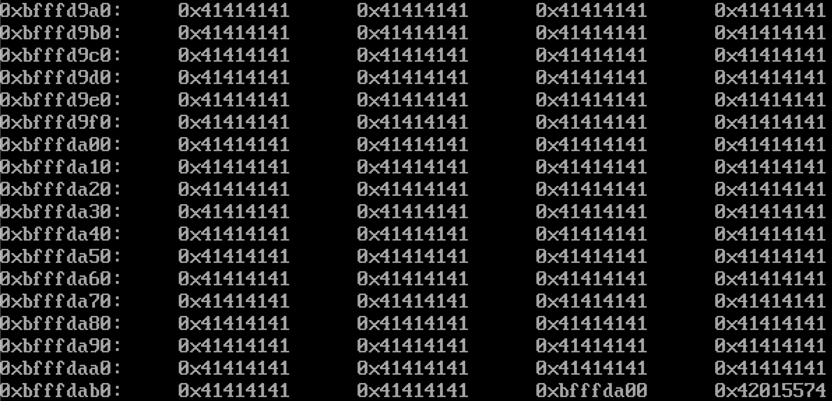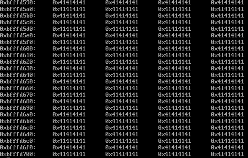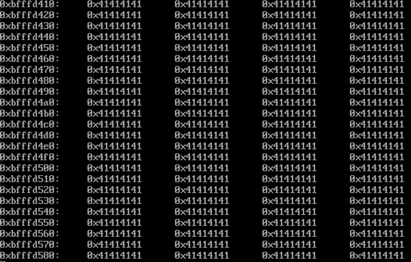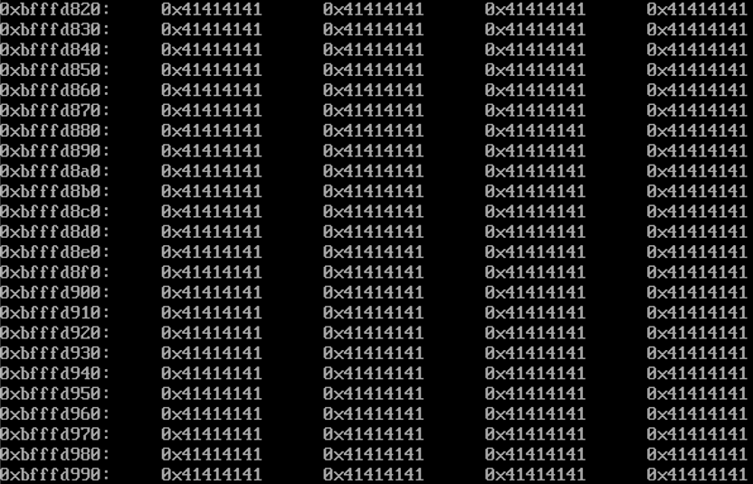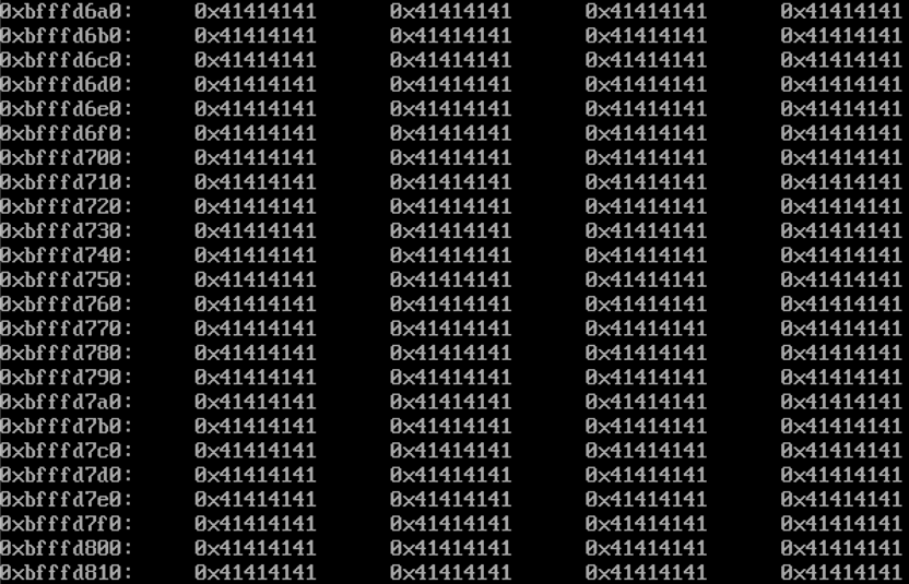 위와 같이 확인용 공격 스크립트를 인자로 주어 실행하고 스택을 살펴본다.
