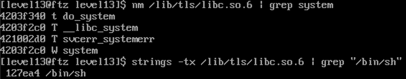 string -tx /lib/tls/libc.so.6 | grep "/bin/sh"