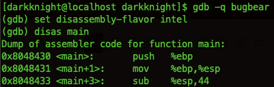 지역 변수의 공간으로 44byte를 할당하는 것으로 보아 dummy 값은 없다.