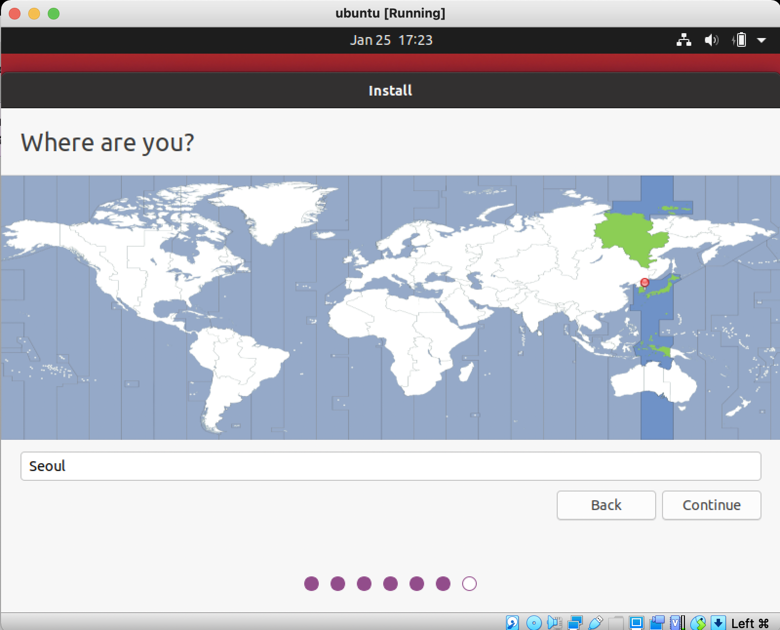 대한민국에 있는 사람은 서울로 설정하고 continue를 눌러 진행합니다.