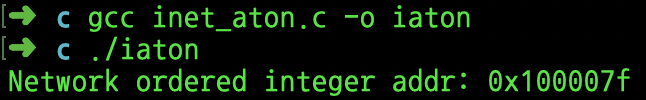 아래의 사진은 inet_aton 함수의 예시이다.