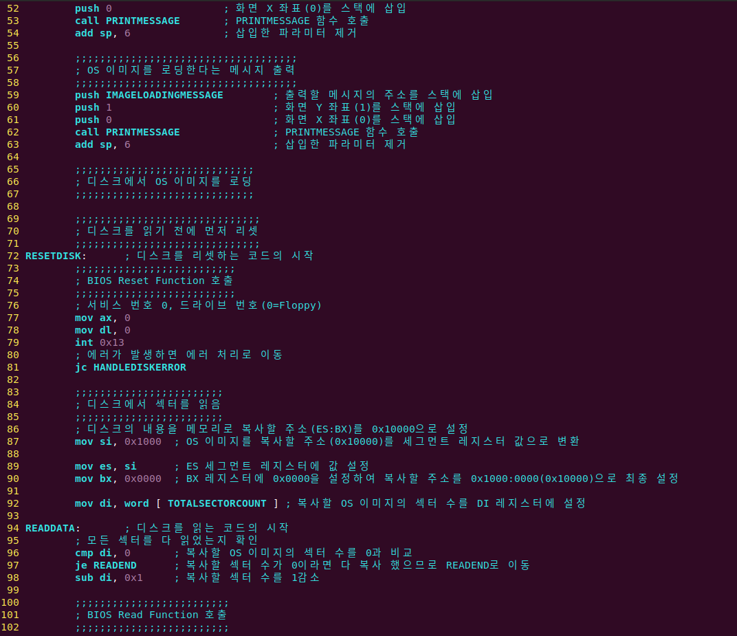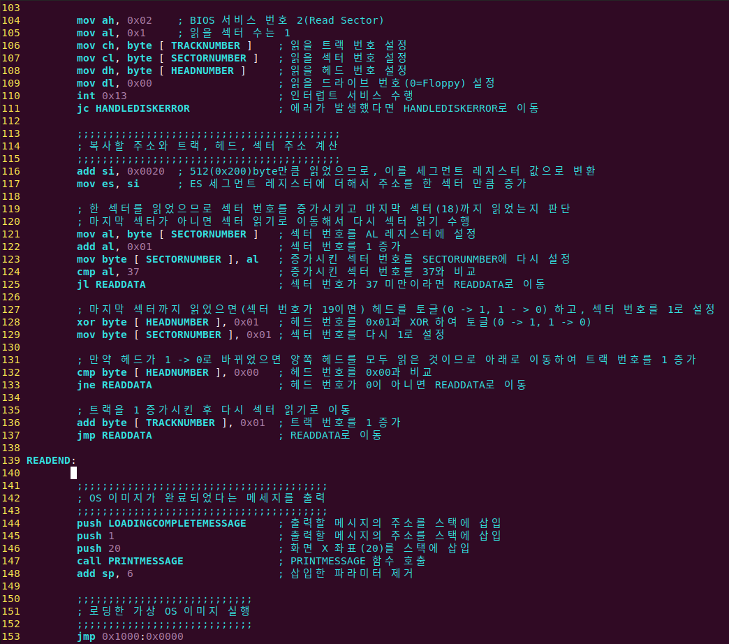 OS 이미지가 정상적으로 로딩되었다면 0x10000 위치로 이동해서 보호 모드 커널 코드를 실행할 것입니다.