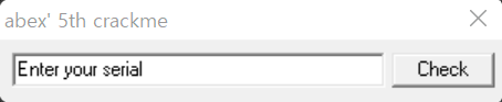 일단 아무런 값도 넣지 않고 “Enter your serial” 문구 그대로 Check 버튼을 누르면 serial 값이 맞지 않다고 한다.