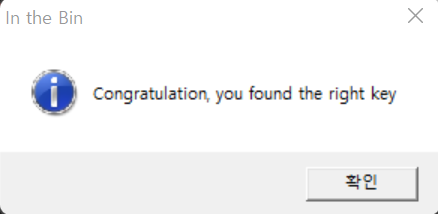 스크롤을 조금 내려보면 401093 주소에서 MesageBoxA 함수를 호출하는데 지정된 Serial 값을 입력했을 때 출력되는 부분이다.
