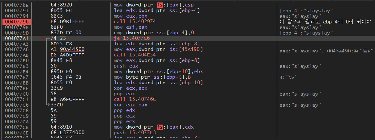 그러므로 407774 주소의 함수 내부로 들어간다.