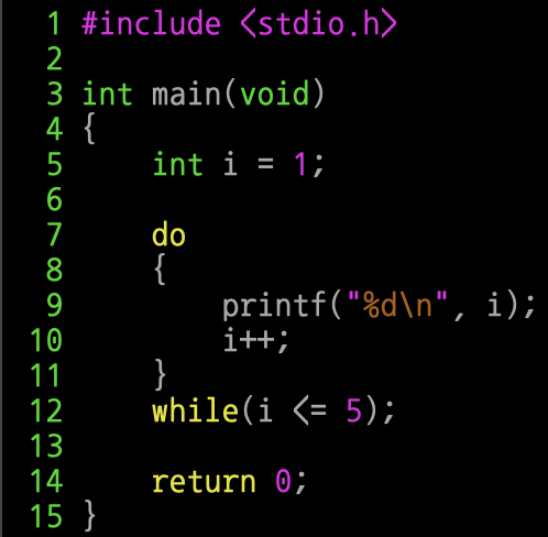 i가 6이 될 때 제어 조건을 만족하지 않기 때문에 더는 while 문을 실행하지 않고 while 문을 빠져나가게 된다.