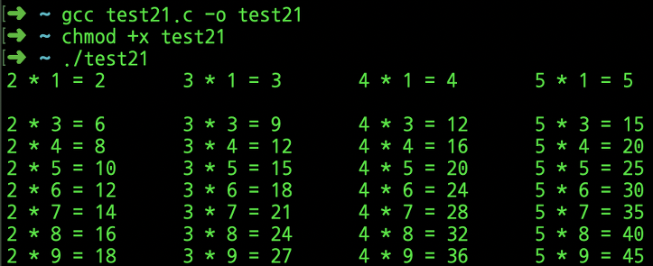 위 코드는 구구단을 출력하는 예제로 2단부터 5단까지 출력하고 있다.