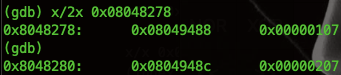 다음 라인에서는 edx+0x4(0x8049fc8)에 있는 값 0x8048266을 edx 레지스터에 넣는다.