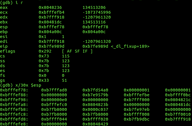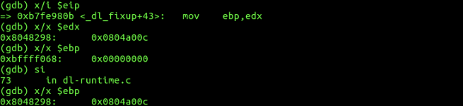 eax = esp+0x10(0xbffff048) = link_map(0xb7fff918)