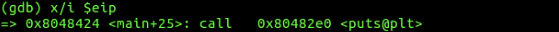 ebp+0x0 주소(0x8048298)에 들어있는 puts 함수의 GOT 주소를 eax 레지스터에 넣는다.