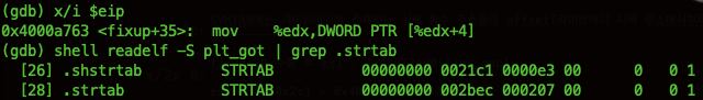 - 실제로 STRTAB의 주소와 STRTAB에서 puts 문자열의 offset 값과 더해 STRTAB에서 puts 문자열의 주소를 구하는 부분