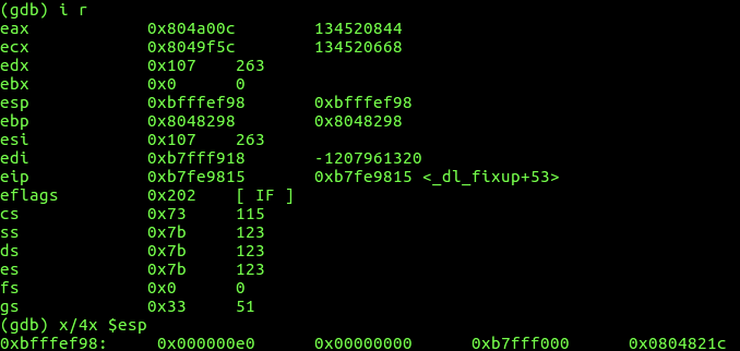 - _dl_lookup_symbol 호출 전 레지스터 및 스택 정리