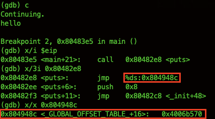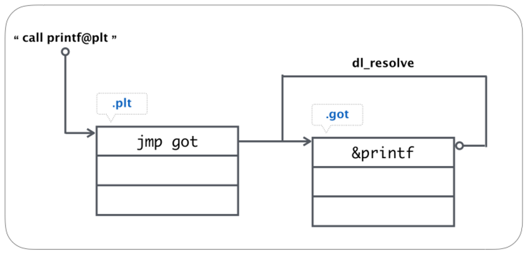 dynamic 링커는 호출할 함수 이름이 있는 메모리의 주소를 구하고 이를 이용해 공유 라이브러리에 있는 실제 함수의 주소를 구해온다.